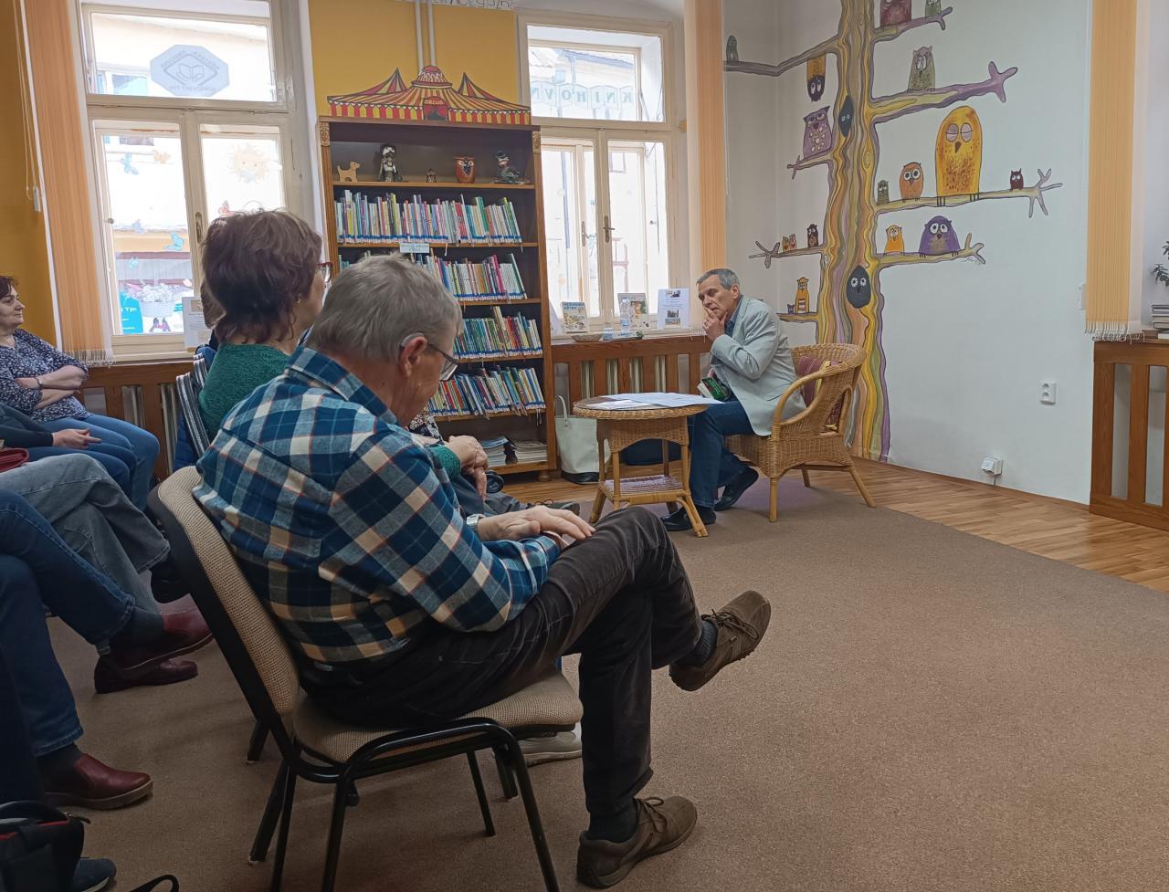 Na začátku dubna přijel do naší knihovny spisovatel a lékař Václav Gruber, který představil čtenářům svoji nejnovější knihu Případ dvakrát mrtvé dámy.
